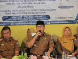 Dengan tema Penguatan Infrastruktur untuk Pembangunan yang Inklusif dan Berkelanjutan, Pemerintah Kota Metro menggelar Musyawarah Perencanaan dan Pembangunan (Musrenbang) tingkat kelurahan yang berlangsung di Aula Kelurahan Rejomulyo, Senis (20/01/2025).