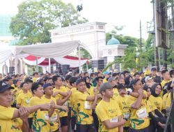 Wakil Wali Kota Metro, Drs. H. Qomaru Zaman, MA, melepas 725 peserta Runniversary Ruang 144 Singing Class Tahun 2025 yang digelar Taman Merdeka Kota Metro, Minggu (12/01/2025).